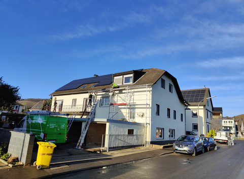 In Folge der Sanierung eines Mehrfamilienhauses mit 15 Miet-Wohneinheiten, wurde eine PV-Anlage mit einer Leistung von 39 kWp inklusive eines Energiespeichers mit einer Kapazität von 27 kWh auf mehreren Gebäudedächern installiert. Die erzeugte Energie wird den Mietern zum Eigenverbrauch zur Verfügung gestellt, darüber hinaus werden 2 Wärmepumpen und 3 Wallboxen für Elektrofahrzeuge (EV) mit dem selbst erzeugten Strom versorgt. Die Mieterstromversorgung ist durch den Einsatz von Smart Metern (intelligente Stromzähler) ermöglicht worden.