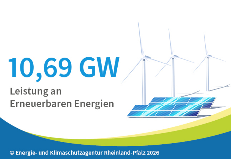 Ende 2025 erreichte die installierte Leistung der Erneuerbaren Energien in Rheinland-Pfalz insgesamt 10,69 Gigawatt (GW). Innerhalb eines Jahres ist der Bestand um rund 1 GW gewachsen und erreichte damit das dritte Jahr in Folge die 1-Gigawatt-Marke.